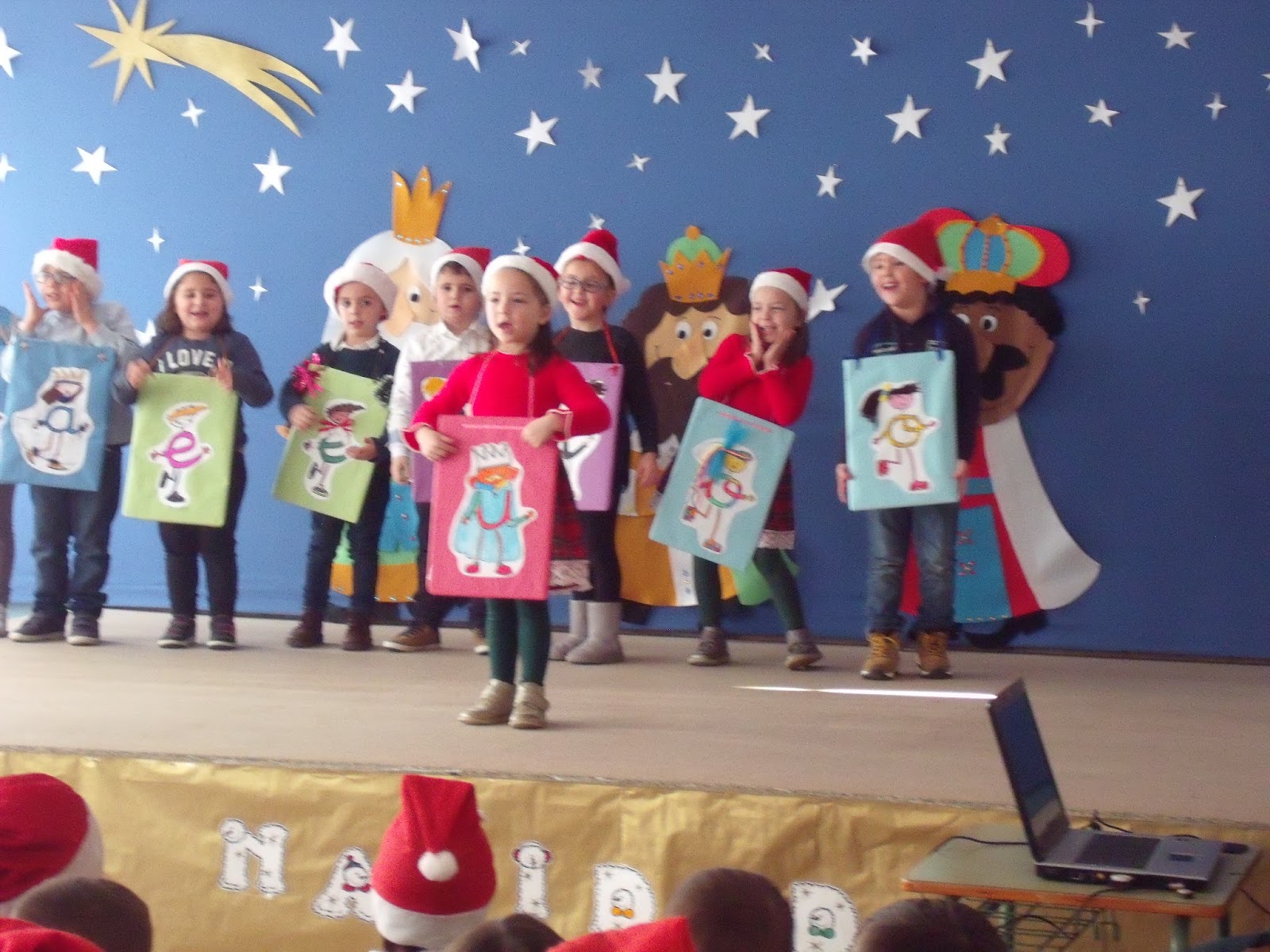 LUEGO SIGUIERON LOS NIÑOS DE 5 AÑOS... EL VILLANCICO DE LAS VOCALES , QUE ESTE AÑO SON TAN PROTAGONISTAS EN NUESTRA CLASE.... LES SALIÓ MUUUYYY BIEN, LA HABÍAMOS ENSAYADO UN MONTÓN Y SE MOSTRARON MUY SEGUROS...